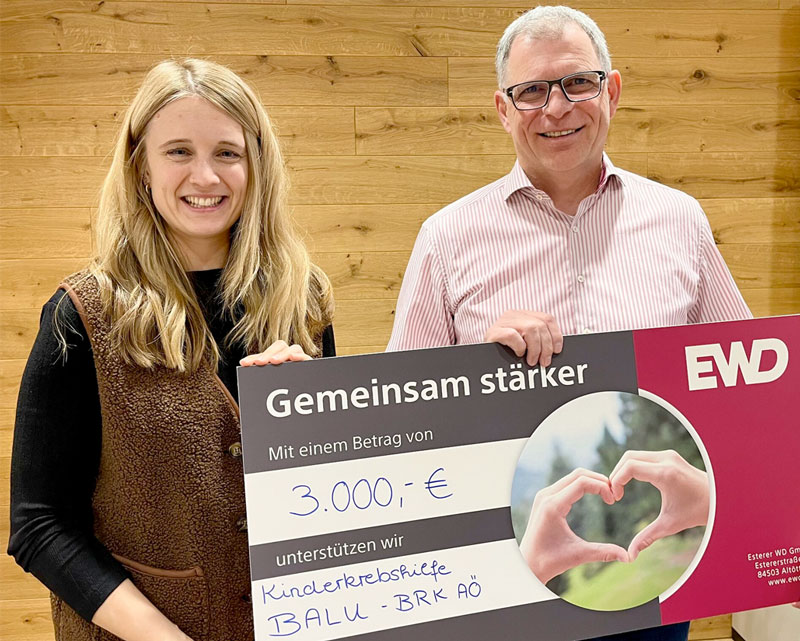 Auch in diesem Jahr unterstützt EWD die Kinderkrebshilfe BALU des BRK Altötting mit einer Spende in Höhe von 3.000 Euro – aus tiefer Überzeugung und mit großem Respekt vor dieser wertvollen Arbeit.