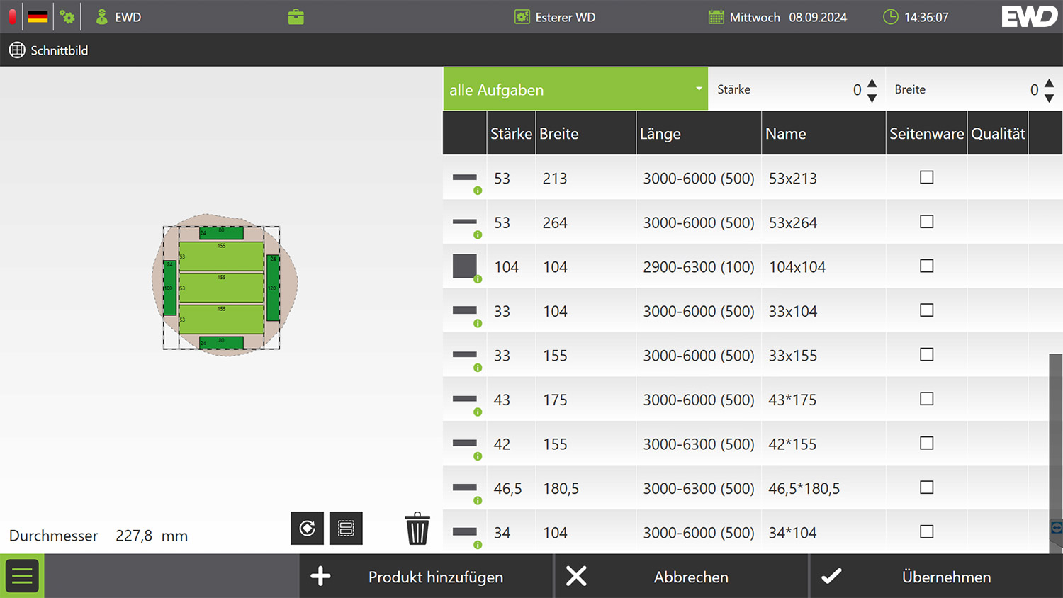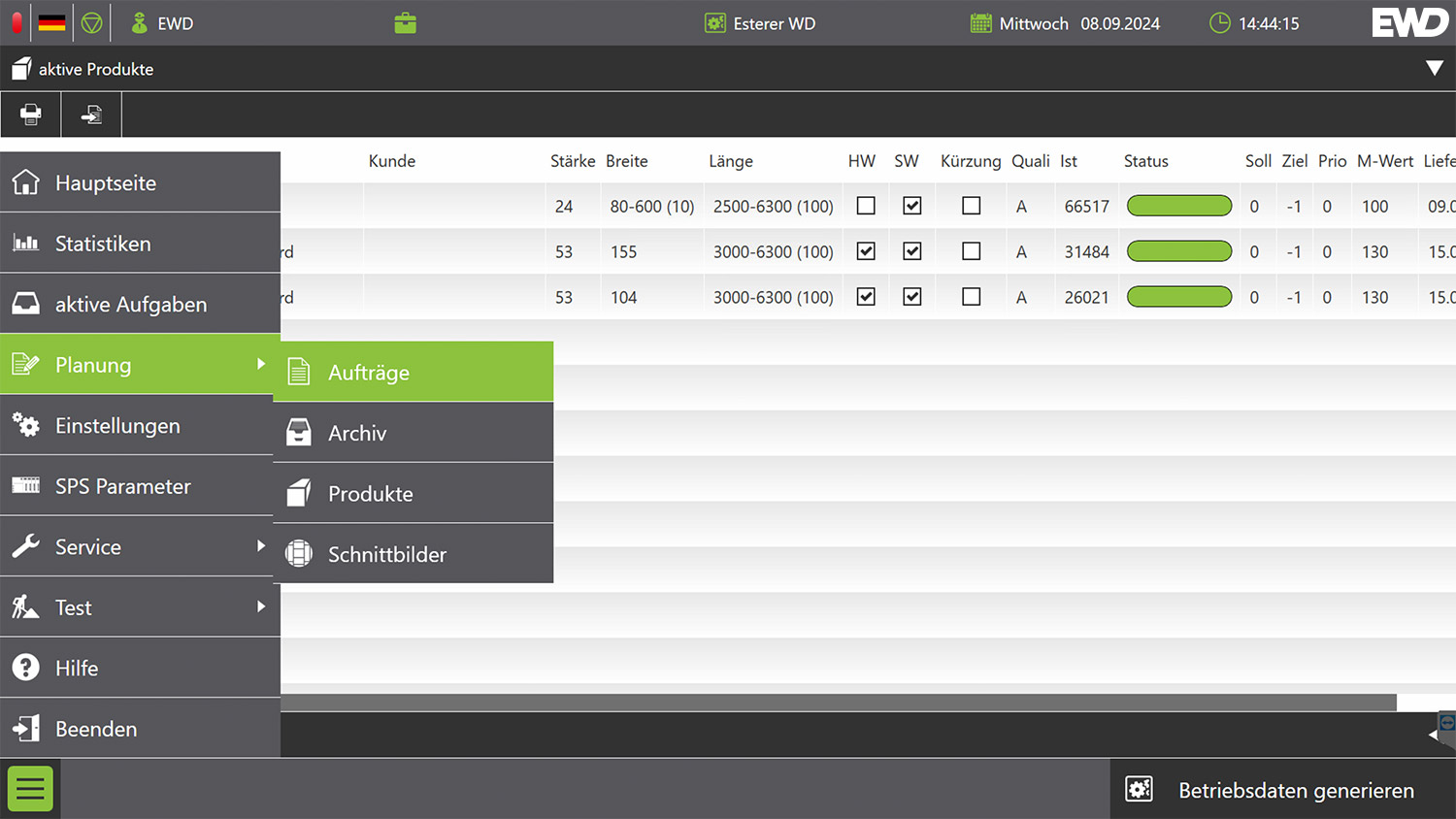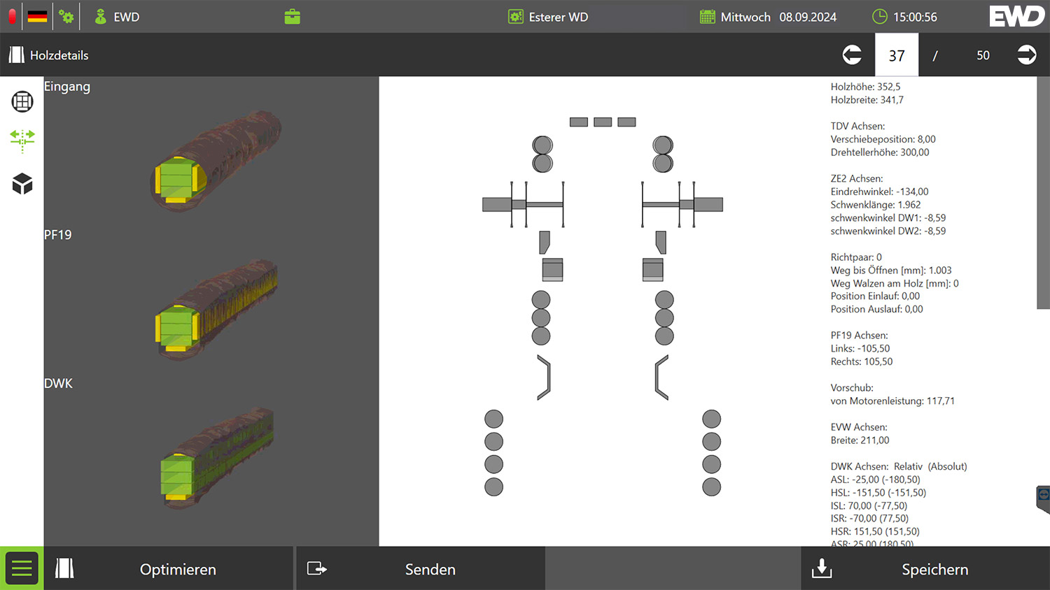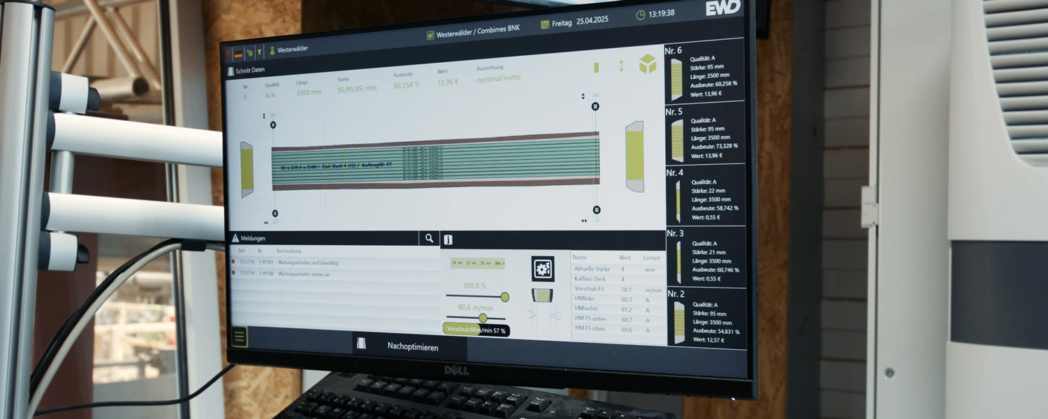 eWood ist die umfangreiche Optimier- und Anwendungssoftware von EWD. Sie kombiniert modernste Messtechnik mit einer intuitiven Benutzeroberfläche und sorgt so für höchste Effizienz und Ausbeute in der Sägeindustrie. Dank durchgängiger Bedienlogik und schneller Einarbeitung wird komplexe Technologie einfach handhabbar. Mit eWood steuern Sie Ihre Anlage zuverlässig, transparent und zukunftssicher.