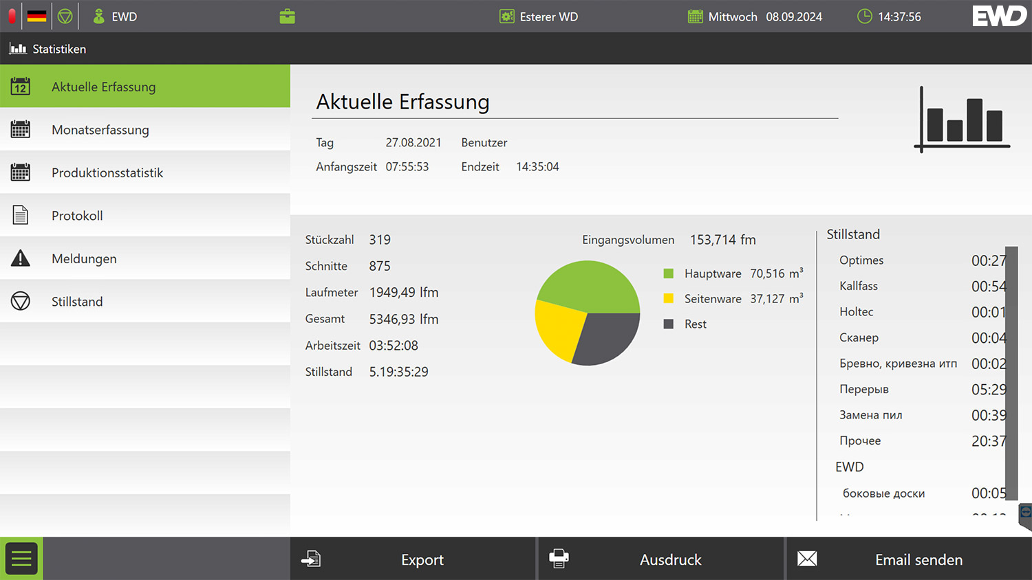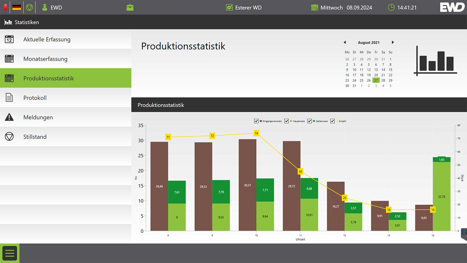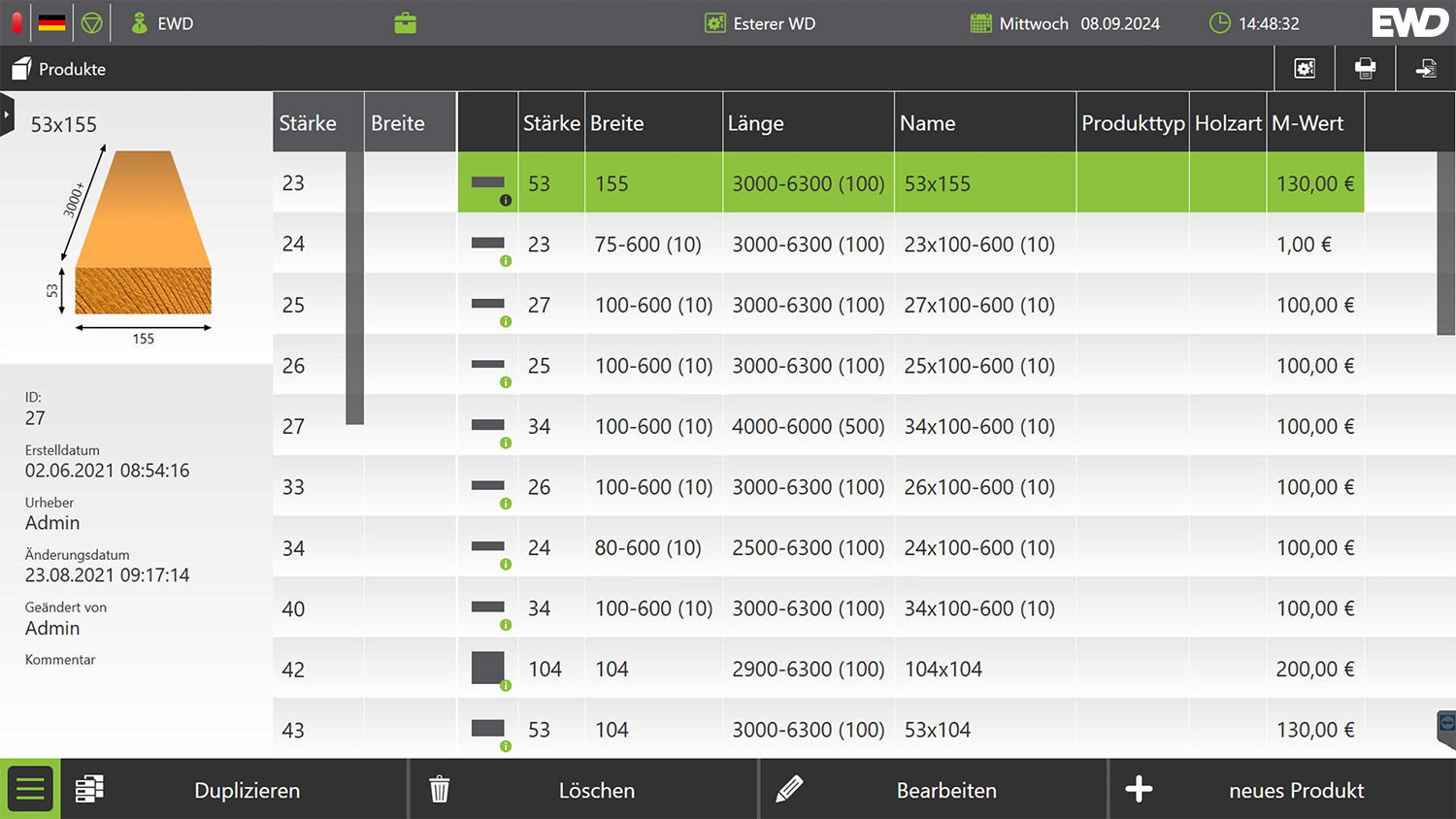 eWood ist die umfangreiche Optimier- und Anwendungssoftware von EWD. Sie kombiniert modernste Messtechnik mit einer intuitiven Benutzeroberfläche und sorgt so für höchste Effizienz und Ausbeute in der Sägeindustrie. Dank durchgängiger Bedienlogik und schneller Einarbeitung wird komplexe Technologie einfach handhabbar. Mit eWood steuern Sie Ihre Anlage zuverlässig, transparent und zukunftssicher.