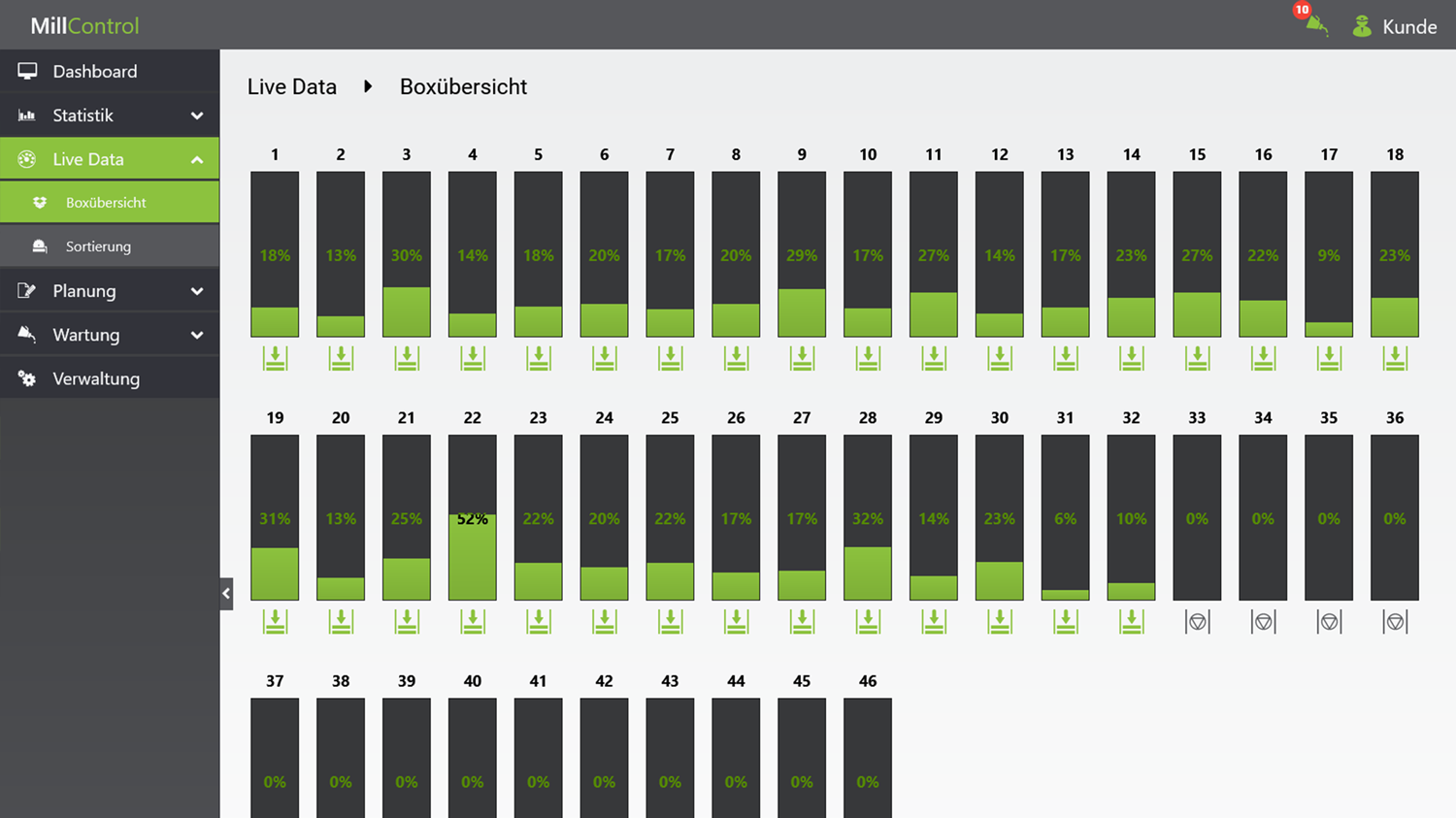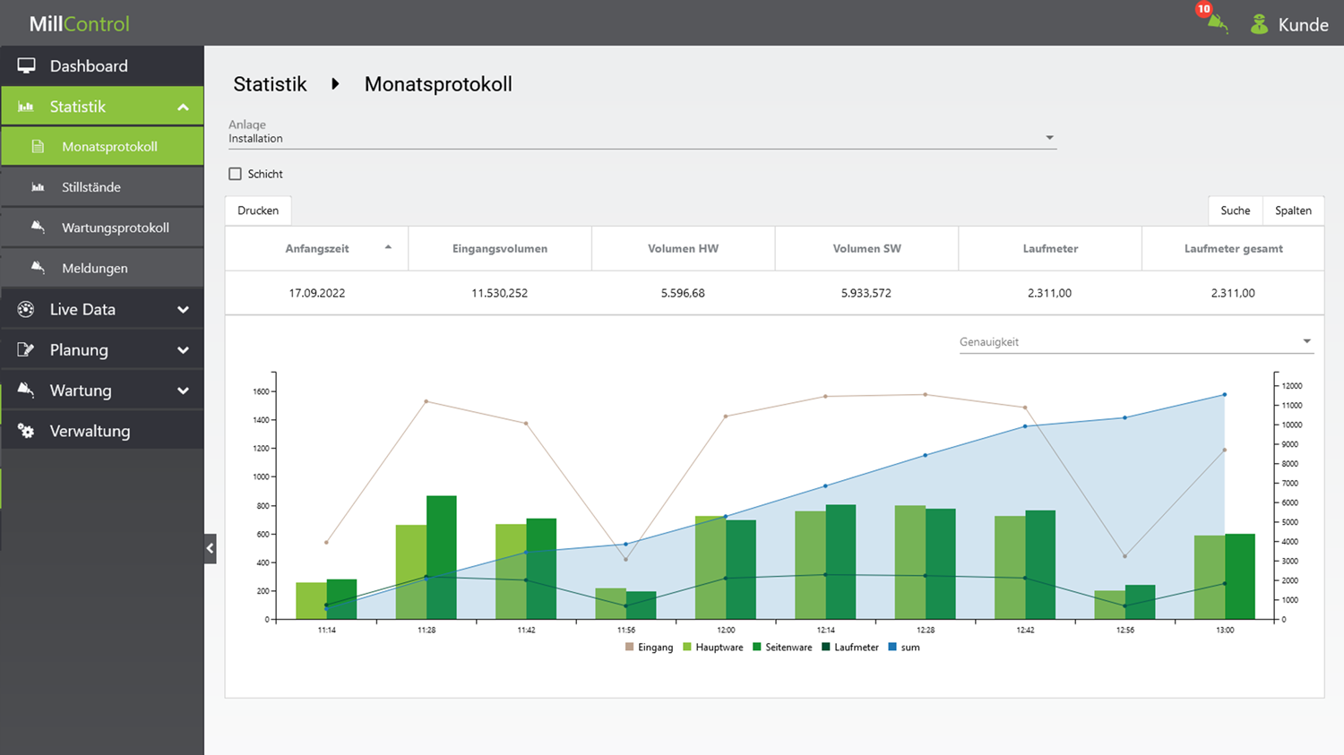 Das Software-Framework bildet den Kern von Millcontrol. Es vereint zentrale Datenspeicherung mit flexiblen Modulen für Analyse, Reporting und Wartung. Offene Schnittstellen ermöglichen eine reibungslose Integration in bestehende IT-Landschaften. Dadurch entsteht ein leistungsfähiges System, das den gesamten Fertigungsprozess transparent abbildet und optimiert.