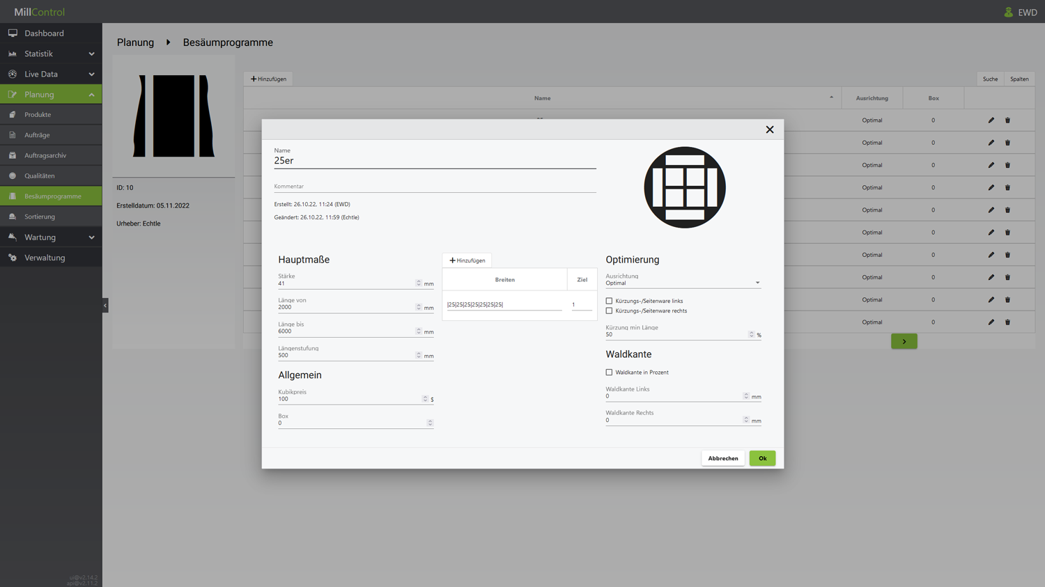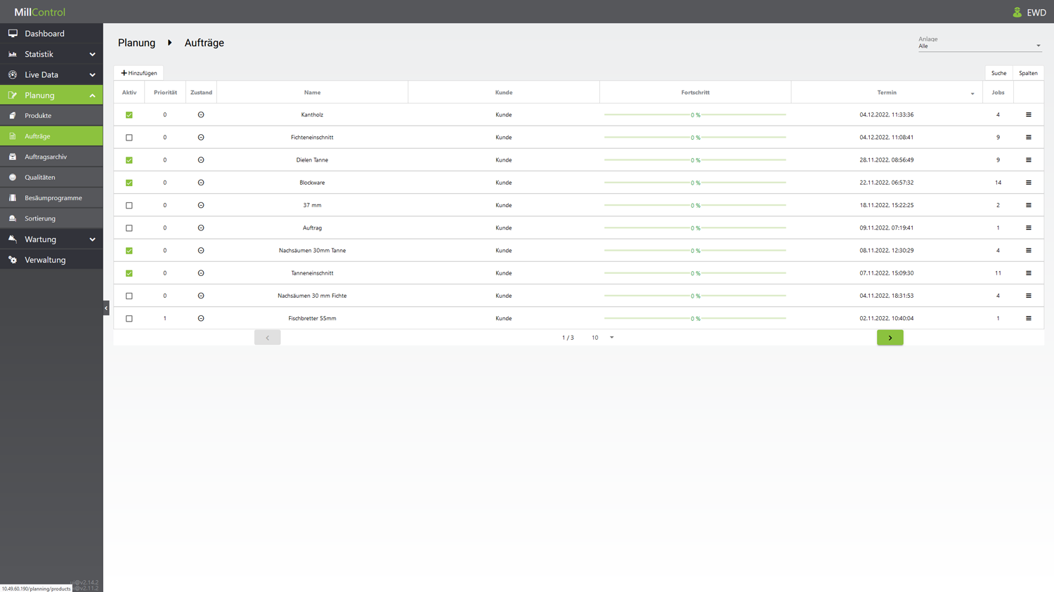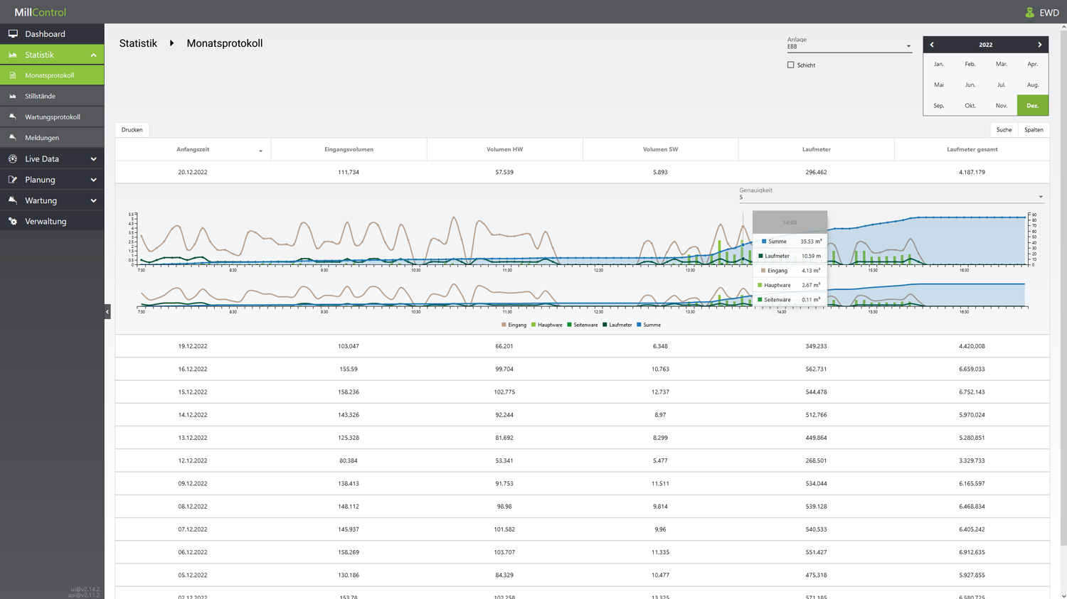 Millcontrol von EWD ist ein modernes und intuitives User Interface für Sägewerke, das Daten aus vernetzten Maschinen sammelt, speichert, verarbeitet, analysiert und visualisiert.