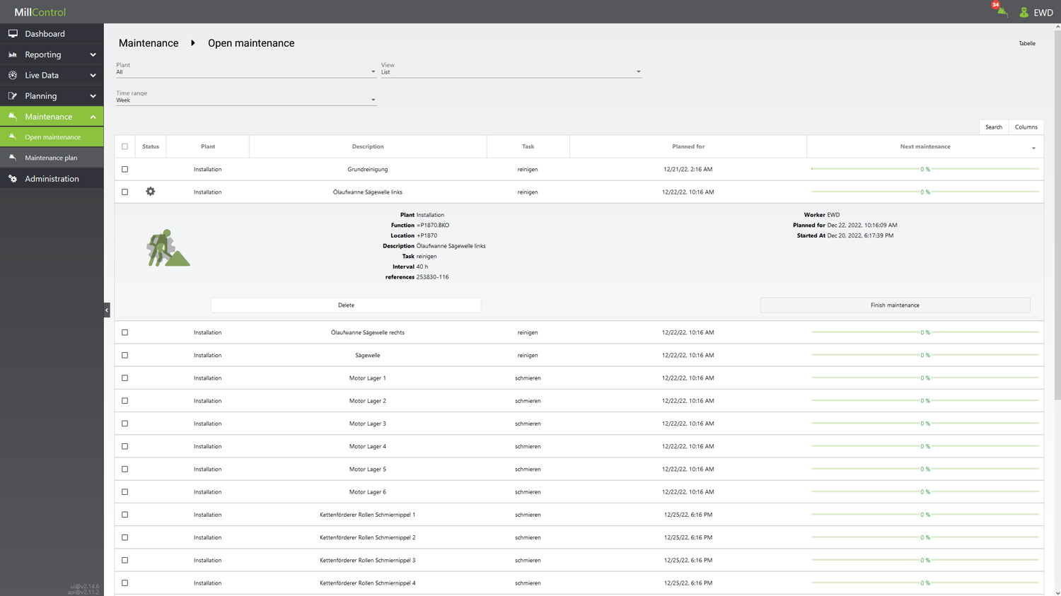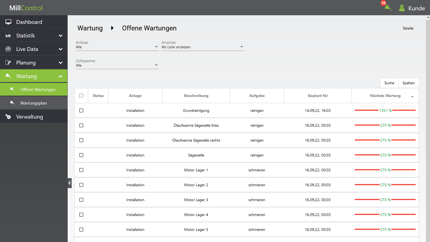 • Frei konfigurierbare Wartungsregeln für jeden Maschinentyp