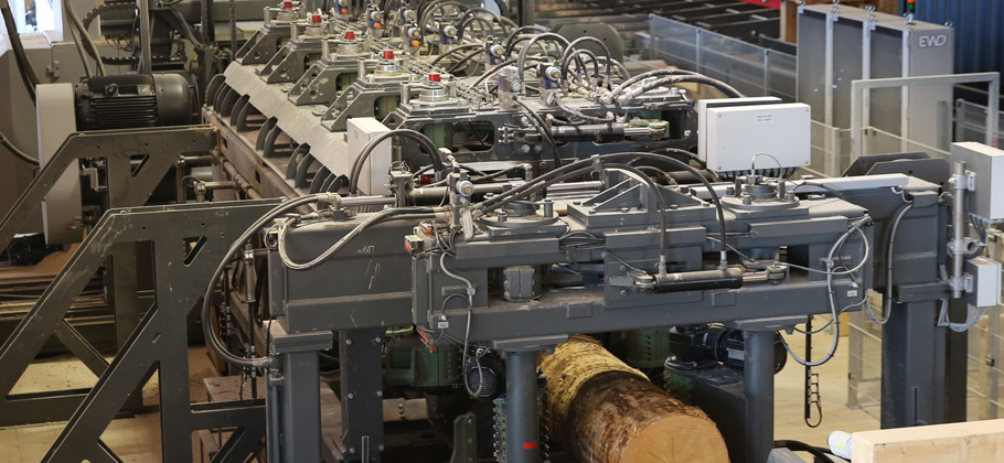 The cant alignment is done based on 3D scanning and sawing pattern optimisation,