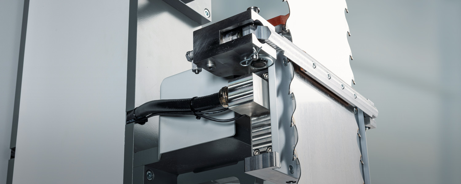 Die präzise Bandführung sorgt für exakte Schnitte und höhere Materialausbeute durch geringeres Einschnittmaß oder eine dünnere Schnittfuge.