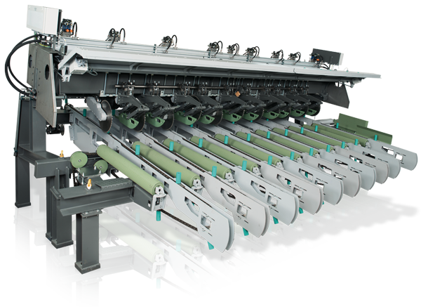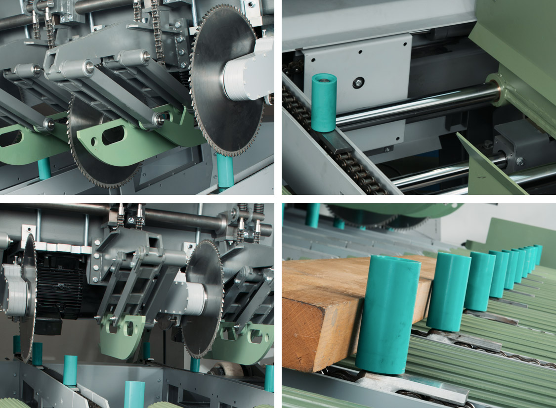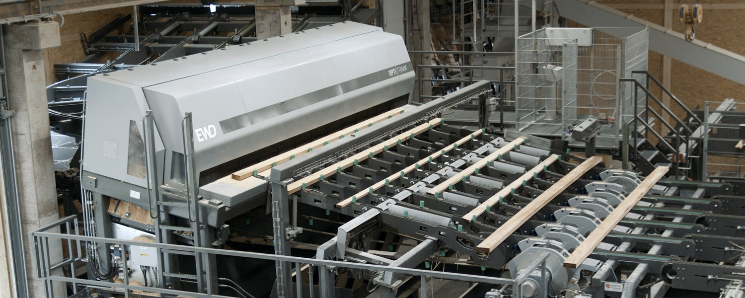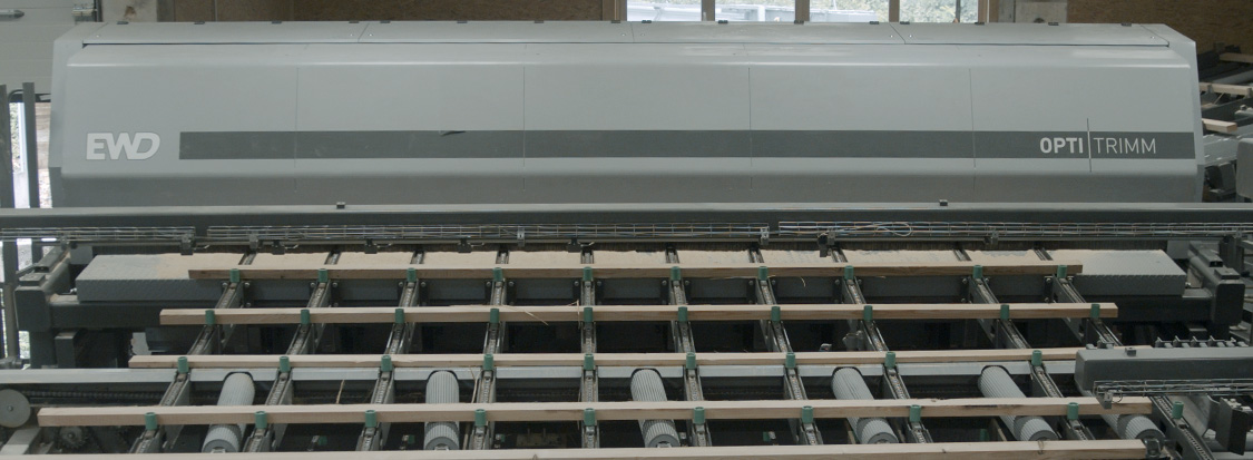 Die Optitrimm setzt neue Maßstäbe im Bereich des effizienten und wirtschaftlich optimierten Trimmens. Mit ihrem Mehrsägenkonzept und dem servohydraulisch gesteuerten Verstellanschlag werden Rohbretter präzise in definierte Fertiglängen geschnitten – exakt nach Kundenvorgabe und mit optionalem Übermaß. Dabei garantiert die intelligente Restholzbehandlung eine saubere Trennung von schwartigen Ausläufen und eine direkte Entsorgung.