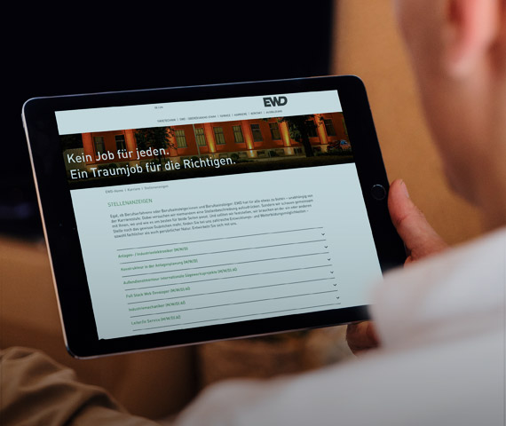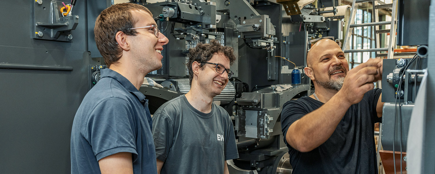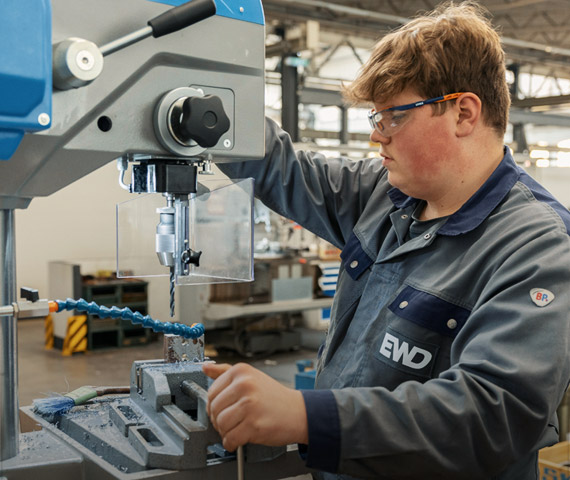 Willkommen bei EWD! Seit mehr als 100 Jahren planen und bauen wir Sägewerksanlagen. Und die können schon mal ganze Hallen füllen. Dafür braucht es ein hohes Maß an Flexibilität und den Mut zur Transformation. Von der Planung über die Inhouse-Produktion an unseren zwei Standorten bis hin zur anschließenden Montage bei unseren Kundinnen und Kunden auf der ganzen Welt – unsere Arbeit ist vielfältig, aber sicherlich nie langweilig. Die große Bandbreite an Aufgaben und eine sich ständig weiterentwickelnde Branche erfordern den Einsatz aller Mitarbeitenden im Team. Dafür werden wir belohnt mit hoher Eigenständigkeit und dem Wissen, dass am Ende eines Projekts wirklich jede und jeder Einzelne von uns etwas dazu beigetragen hat.